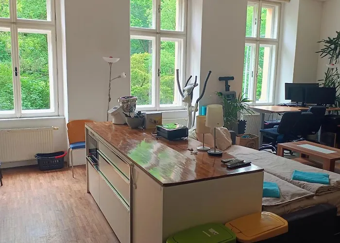 Daire, Prag şehir merkezine 1 km uzaklıkta ve Petrin Tepesi'a uzak değildir. Daire, Prague 5 semtinde, Kinsky Bahçesi'a yakın konaklama imkanı sunar. Avrupa yemeklerini sunan Kolkovna Olympia, yürüyerek 13 dakikada ulaşılabilir. Konaklama tesisi Staroměstské náměstí'a kısa sürüş uzaklığındadır.